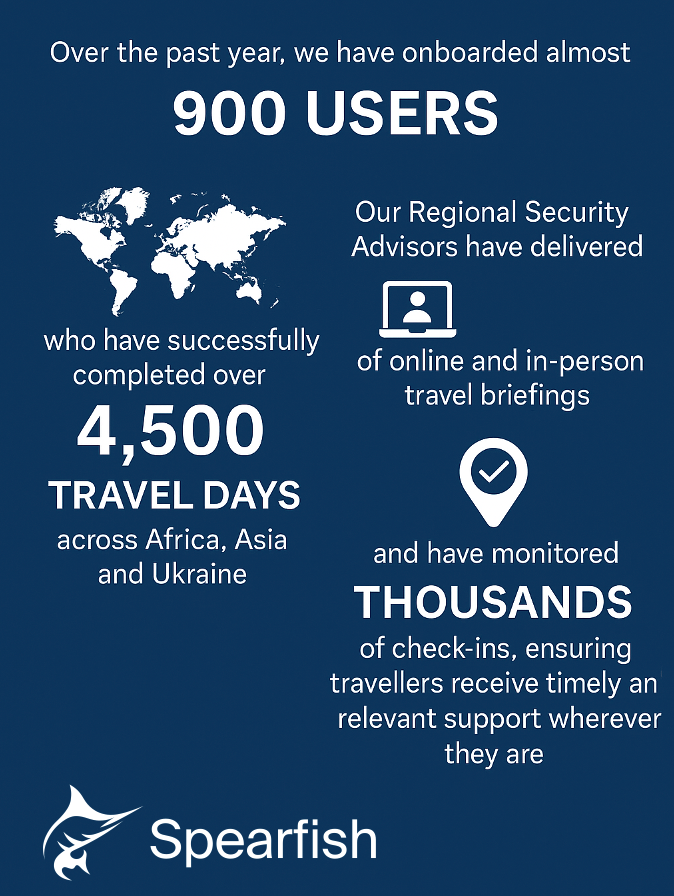 It has been an incredibly busy, rewarding, and transformative year — both for our team and for the hundreds of travellers and client managers who now rely on SONAR every day. Over the past twelve months, SONAR has moved from concept to daily operational tool, supporting missions across Africa, Asia, and Ukraine, and adapting continually as real-world travel patterns and client needs have shaped its evolution. What began as a digital framework has developed into an integrated service — combining technology, human expertise, and proactive risk monitoring to help organisations operate with confidence in challenging environments. This first year has not only demonstrated the value of SONAR in the field but has also laid a strong foundation for the next phase of growth, innovation, and deeper client engagement.